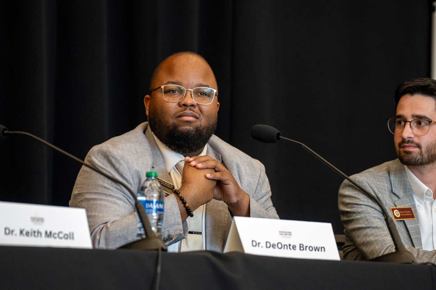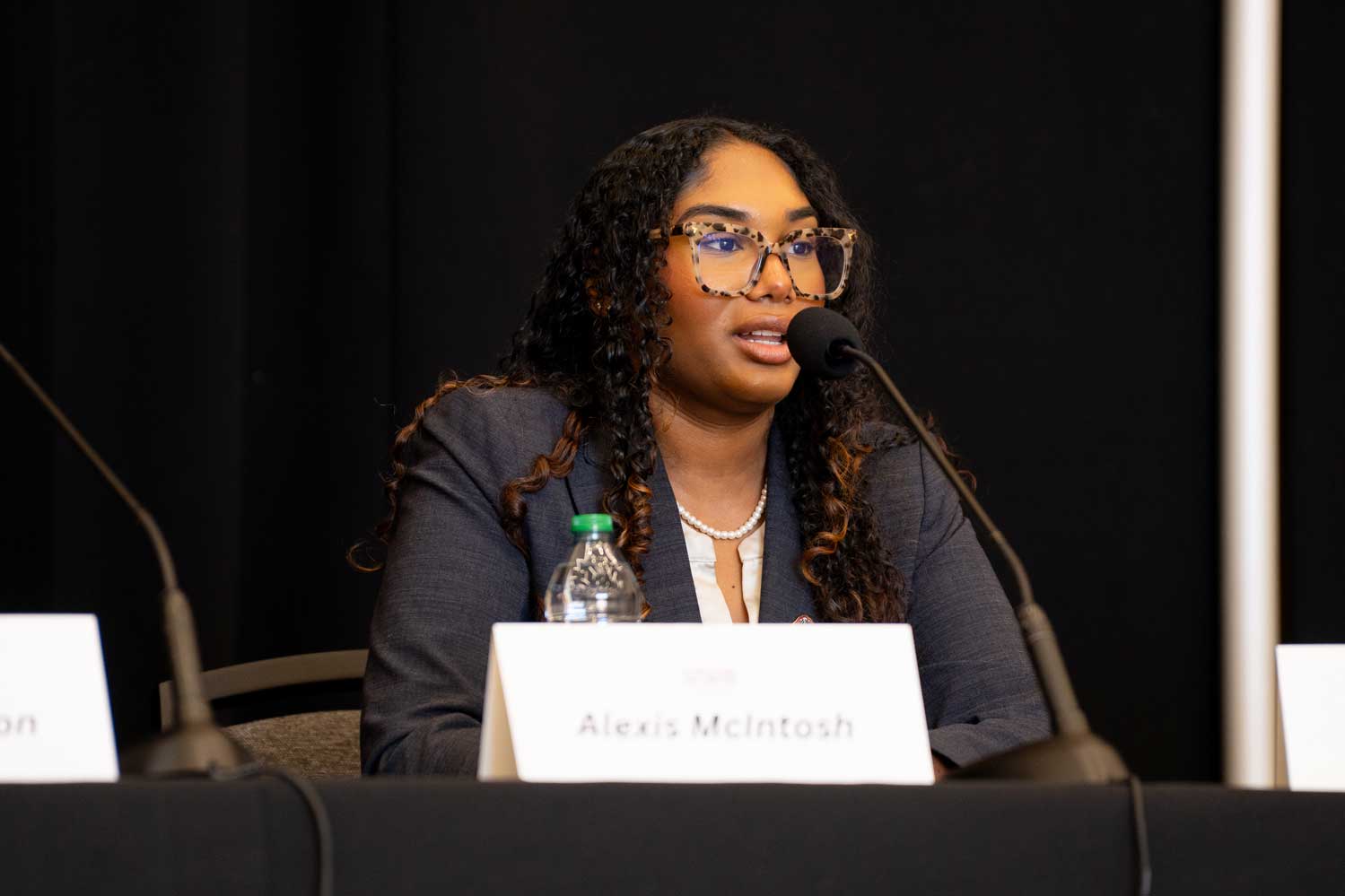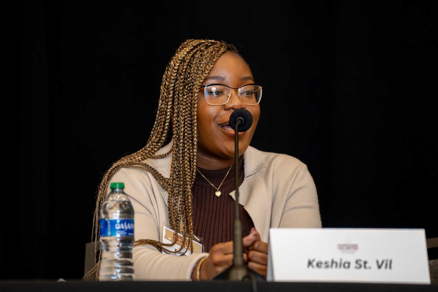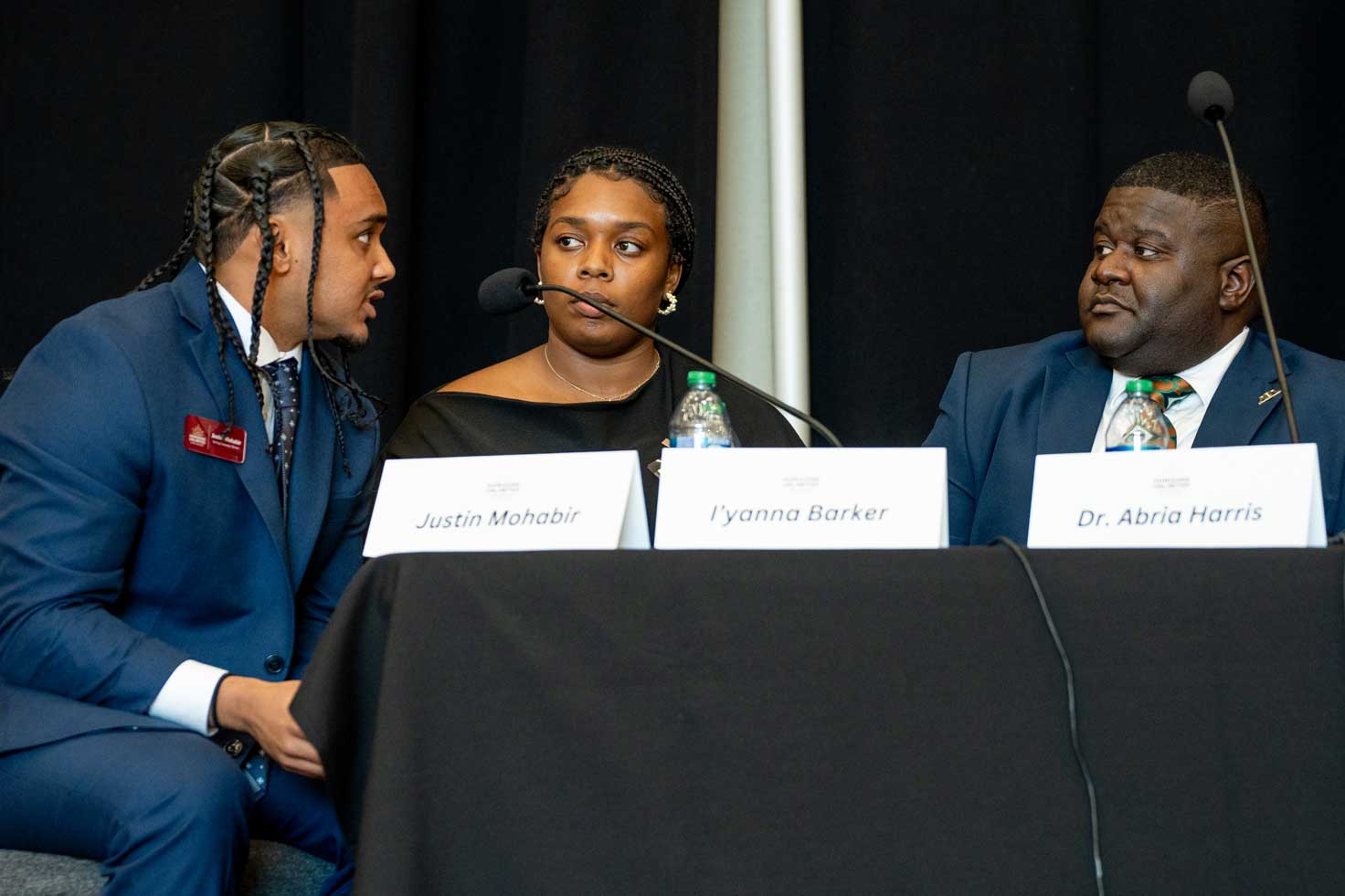 FSU First Lady Dr. Jai Vartikar proposed the conference, which was planned by first-generation students for first-generation students. The steering committee included Joshua Burns, Kheila Chanza, Jenee Gray, Kephtania Jean Hilaire, Amanda Johnson, Kevin Knowles and Justin Mohabir. The conference offered three main sessions: maximizing the college experience, considering graduate schools, and navigating job searches and career establishment. It also provided networking opportunities with fellow first-generation students, alumni, faculty and university leaders. President Richard McCullough spoke about his own journey as a first-generation student to Florida State University first-generation students at the closing keynote speech. The evening ended with a question-and-answer session between McCullough and FSU Trustee Vivian de las Cuevas-Diaz, an alumna and first-generation student. They discussed topics such as imposter syndrome, the importance of building and using networks, and seeking advice from admired professionals.