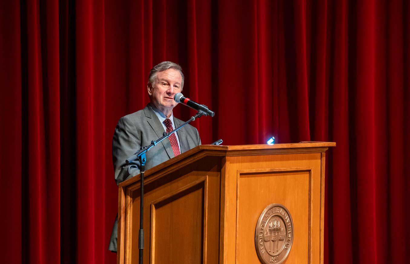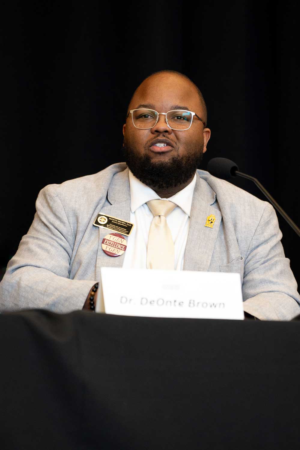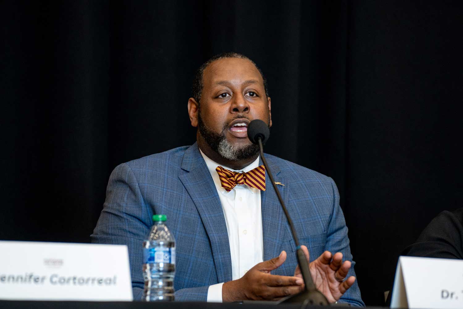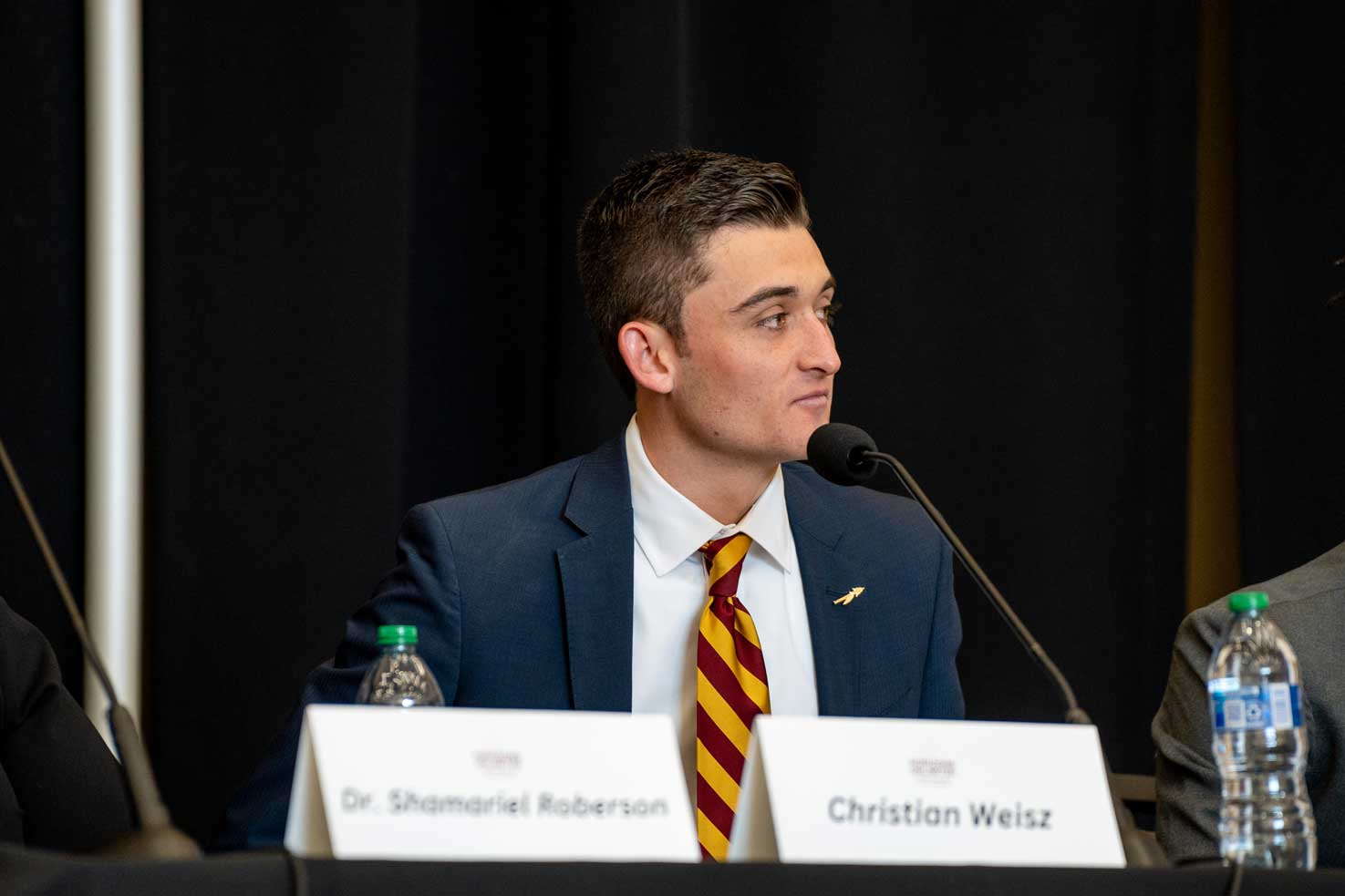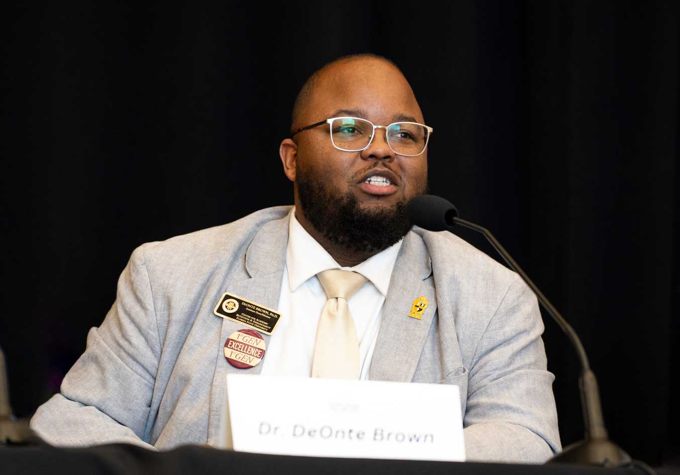 FSU First Lady Dr. Jai Vartikar proposed the conference, which was planned by first-generation students for first-generation students. The steering committee included Joshua Burns, Kheila Chanza, Jenee Gray, Kephtania Jean Hilaire, Amanda Johnson, Kevin Knowles and Justin Mohabir. The conference offered three main sessions: maximizing the college experience, considering graduate schools, and navigating job searches and career establishment. It also provided networking opportunities with fellow first-generation students, alumni, faculty and university leaders. President Richard McCullough spoke about his own journey as a first-generation student to Florida State University first-generation students at the closing keynote speech. The evening ended with a question-and-answer session between McCullough and FSU Trustee Vivian de las Cuevas-Diaz, an alumna and first-generation student. They discussed topics such as imposter syndrome, the importance of building and using networks, and seeking advice from admired professionals.